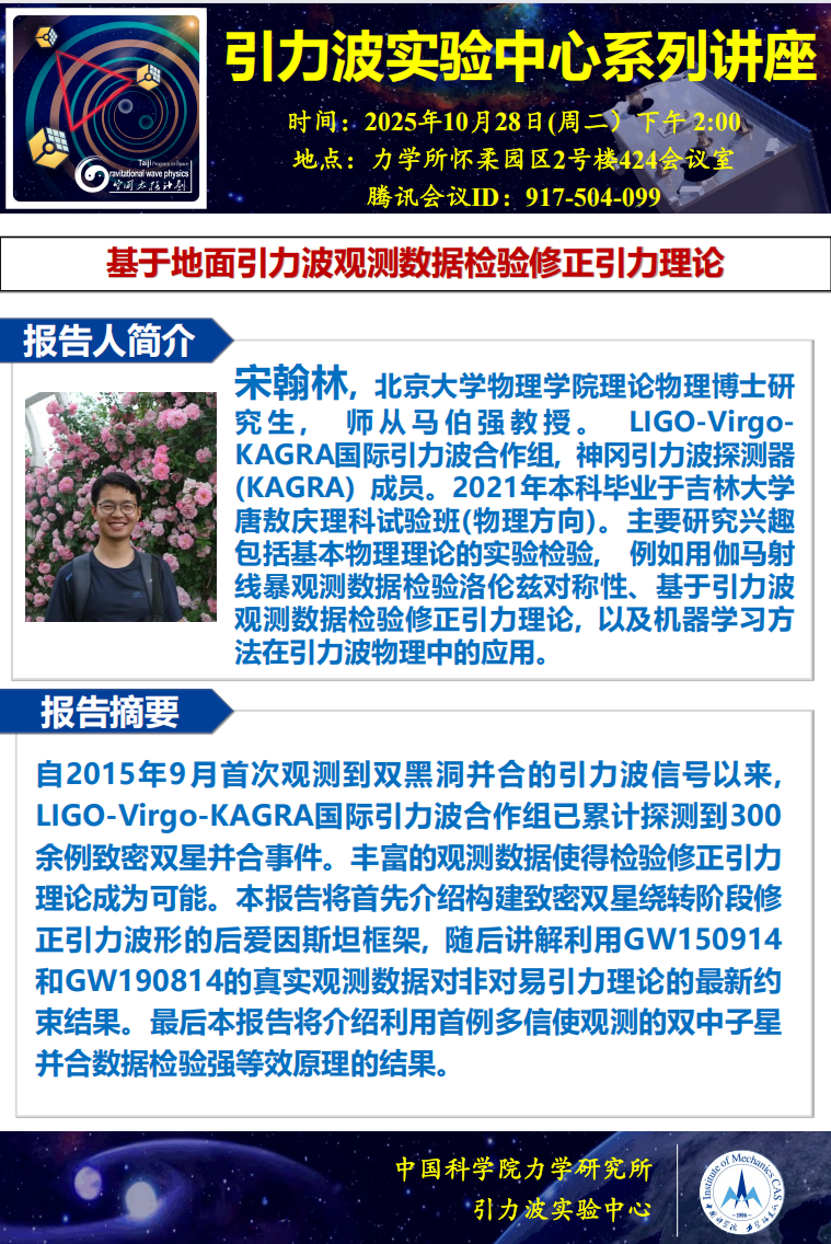 (NML 2025年10月24日 10:00 中关村园区9号楼314会议室)引力波探测大师讲坛