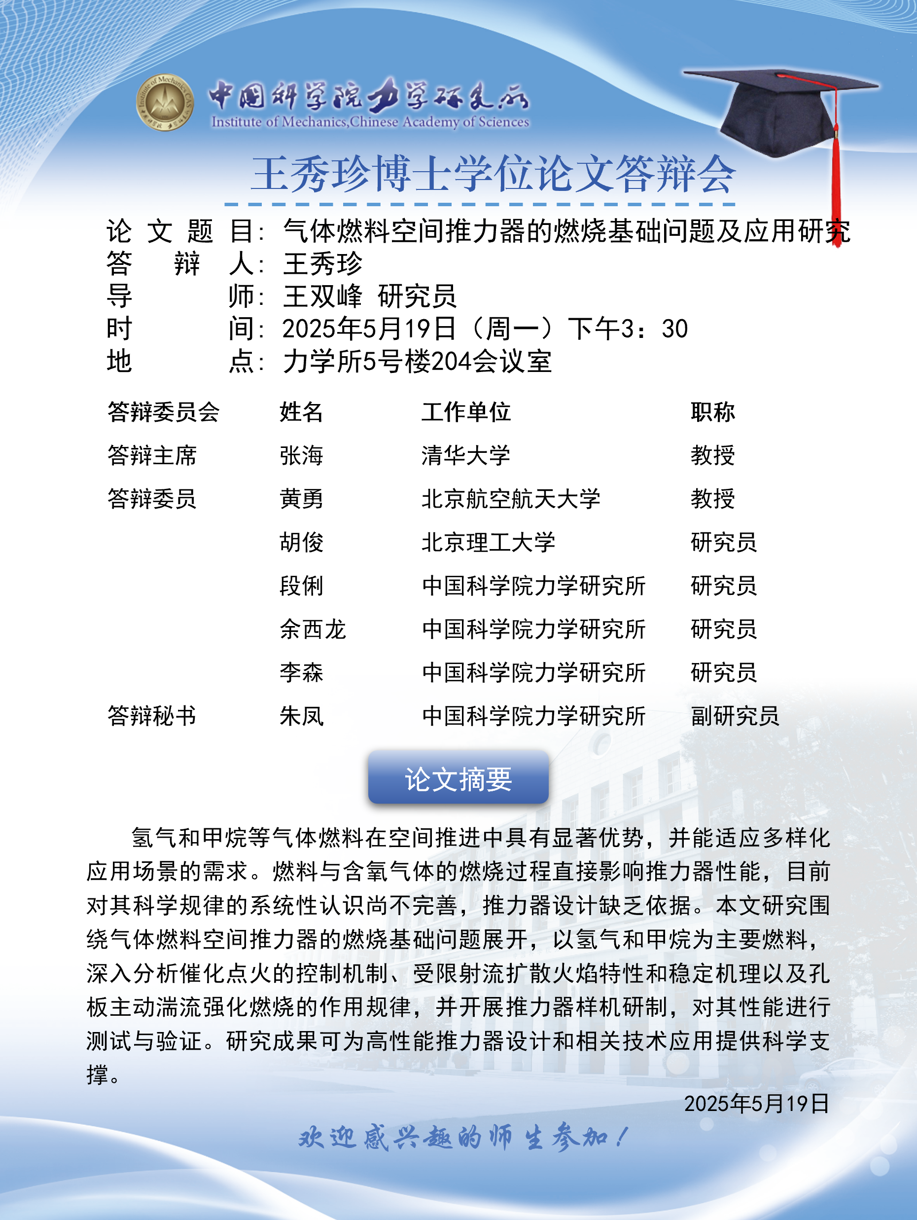 (2025年5月19日15:30 5号楼204会议室)王秀珍博士学位论文答辩会