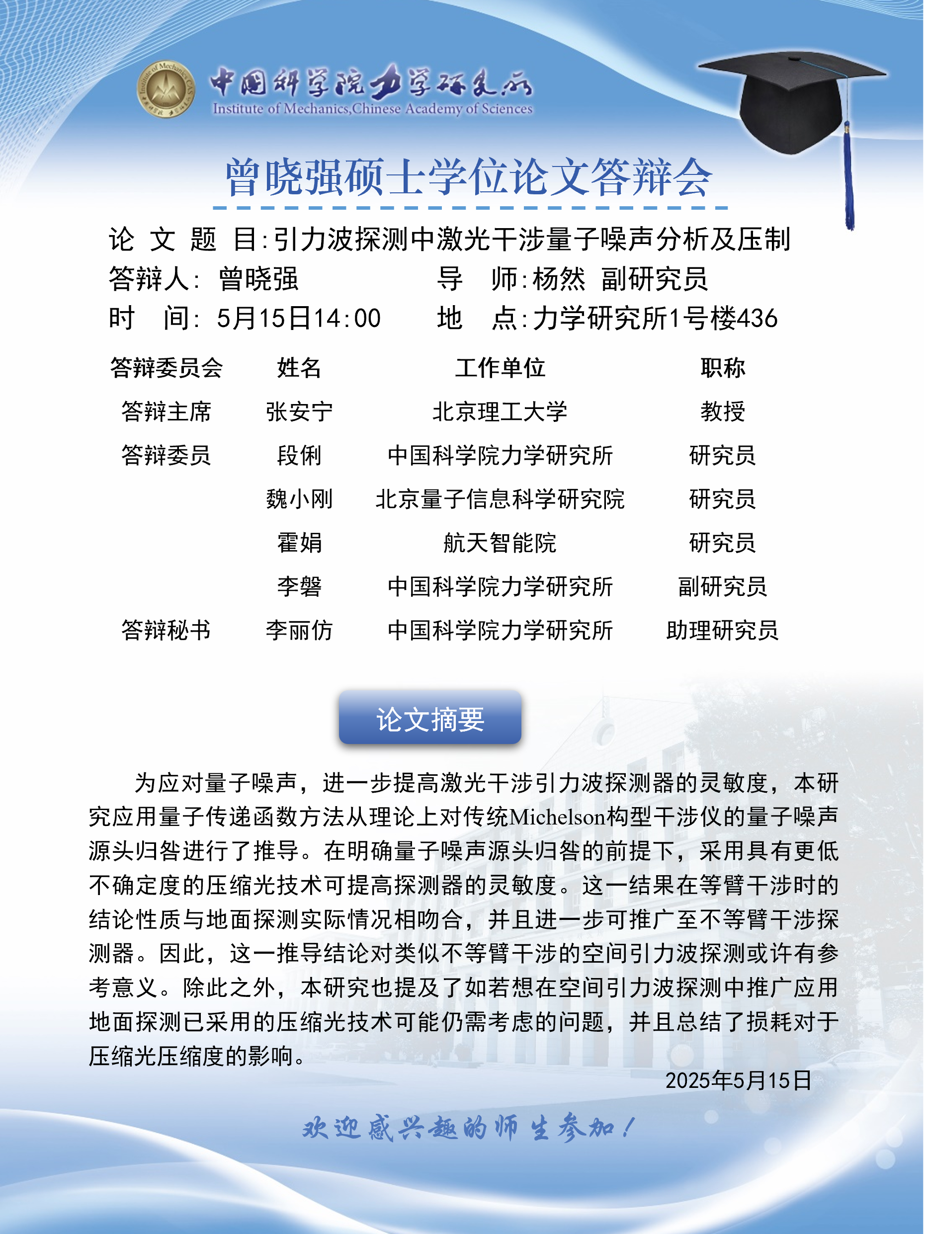 (2025年5月15日 14:00,1号楼436会议室)曾晓强硕士学位论文答辩会