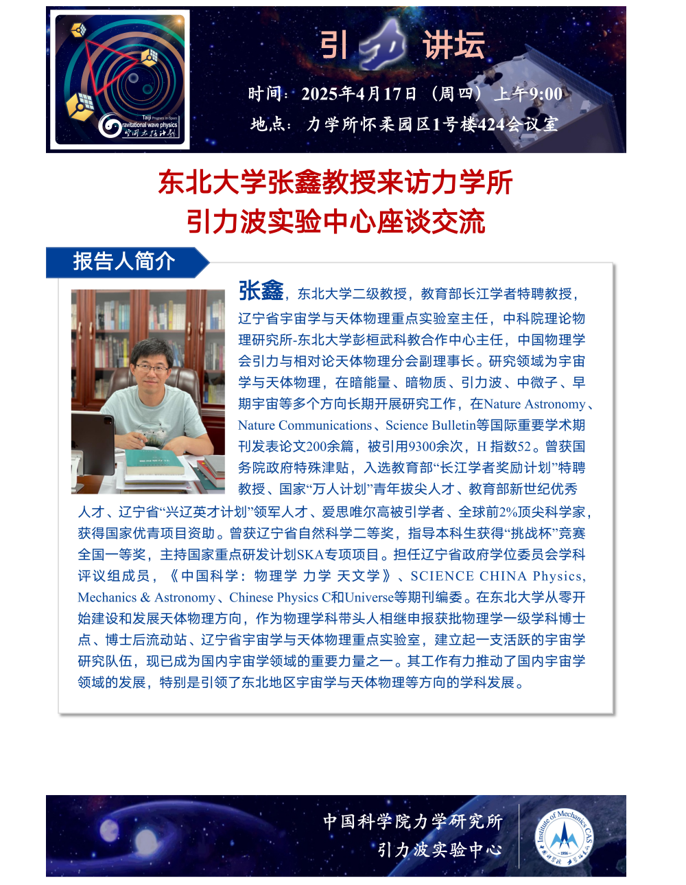 (NML 2025年 4月17日09:00 怀柔园区1号楼424会议室)引力波实验中心座谈交流