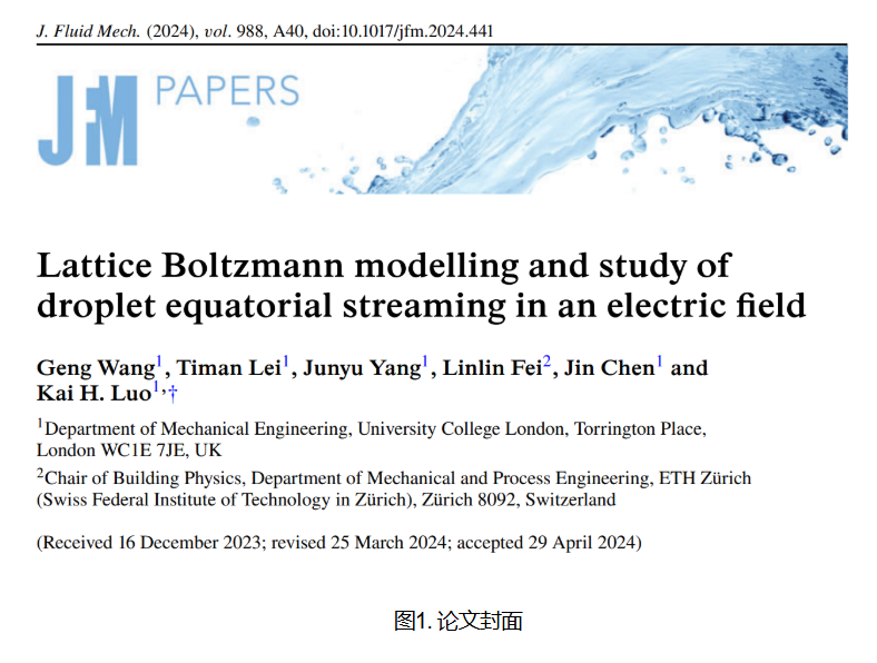 力学所微重力重点实验室王耿副研究员等撰写的论文“Lattice Boltzmann modelling and study of droplet equatorial streaming in an electric field (Wang, Geng, et al. Journal of Fluid Mechanics 988 (2024): A40.)” 被Journal of Fluid Mechanics编委员会遴选为2024年新锐学者优秀论文(Runners-up deserving honourable mention)。评审委员会高度评价了获奖论文在学术水平、写作质量及研究的前沿性与影响力等方面的突出表现 (获奖评价:“The committee have awarded this due to its strength in academic excellence, clarity of writing and the timeliness and impact of the findings”)。